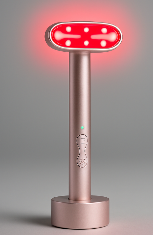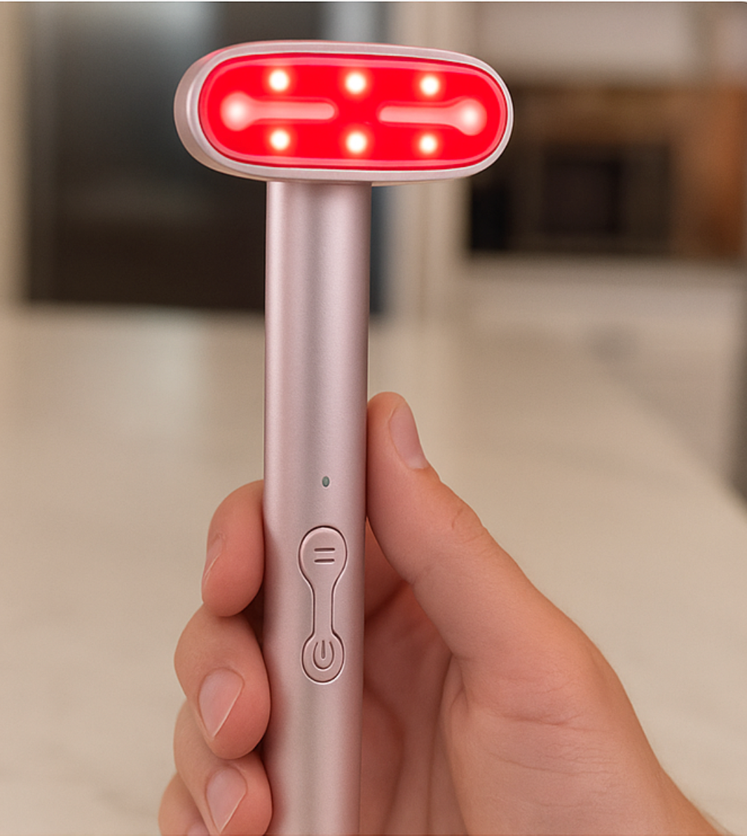 The wand utilizes red light therapy to stimulate collagen production, reduce wrinkles, and boost skin elasticity.